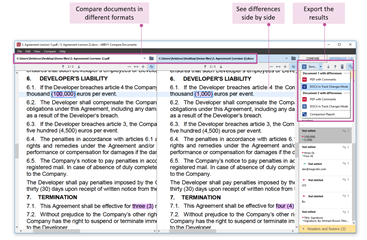 快速且可靠地识别出不同格式文档两个版本之间的差异(包括扫描件)。可快速识别出未经授权的更改,并可检查是否已执行双方商定的编辑,或验证文档是否完全未经更改。
