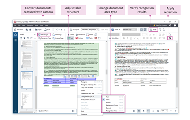 简单而有效地使用文档并完成定稿,节省时间和精力。无论是以数字方式创建还是从纸质文档转换而来的任何文档,都能以同样有效的方式进行处理。无需执行额外的文档转换步骤,即可访问和编辑文本、表格和 PDF 的整个布局。