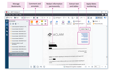 让我们来看看ABBYY FineReader PDF这一款产品!这是一套功能全面的PDF工具,以OCR技术为驱动,其准确率之高足以处理法律诉讼各个阶段的文件。在办公室中、在法律诉讼期间、或在与委托人沟通过程中,ABBYY FineReader PDF都提供了简单易用的功能管理和简化日常工作。